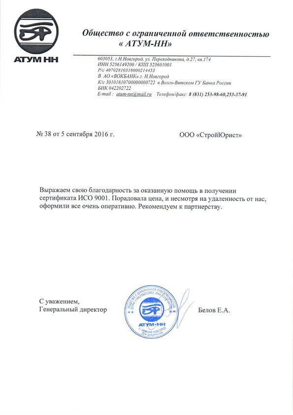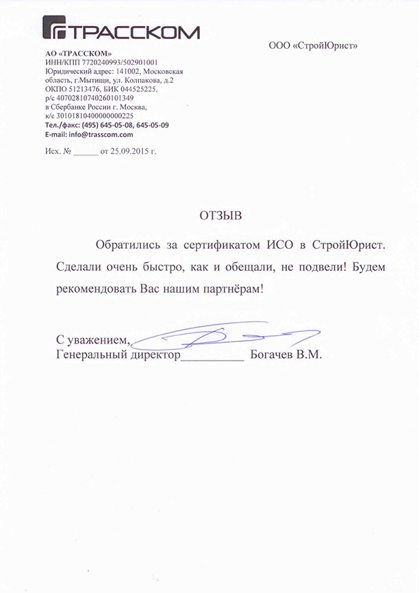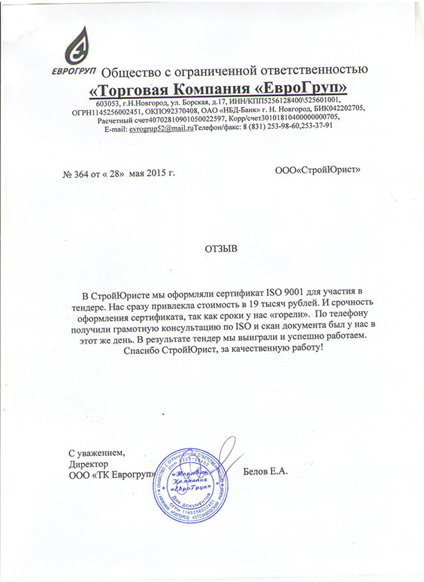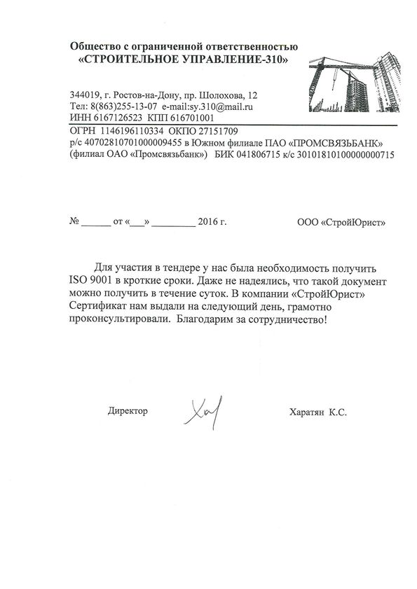 Отзывы клиентов "СтройЮрист" по ISO в Ставрополе