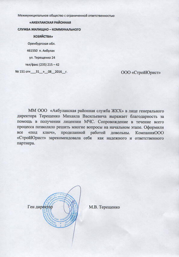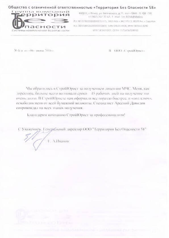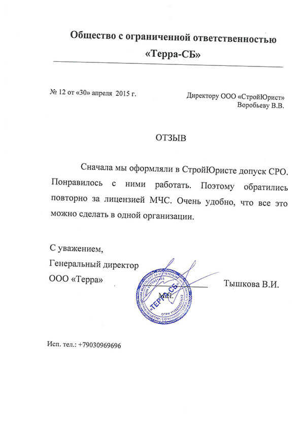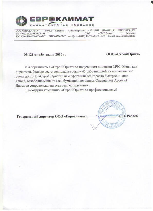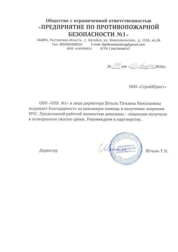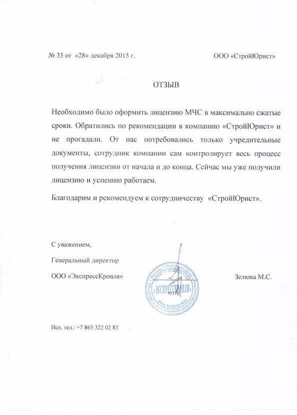 Отзывы клиентов "СтройЮрист" по лицензированию МЧС в Ставрополе
