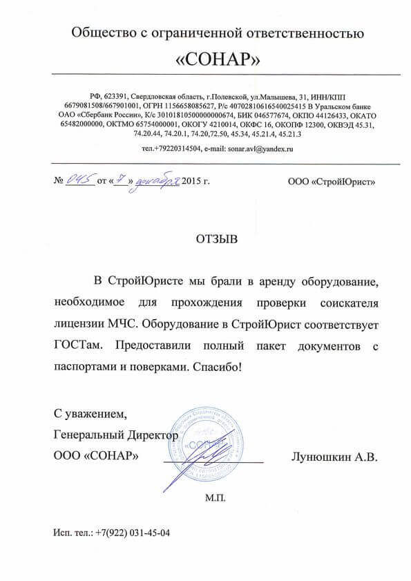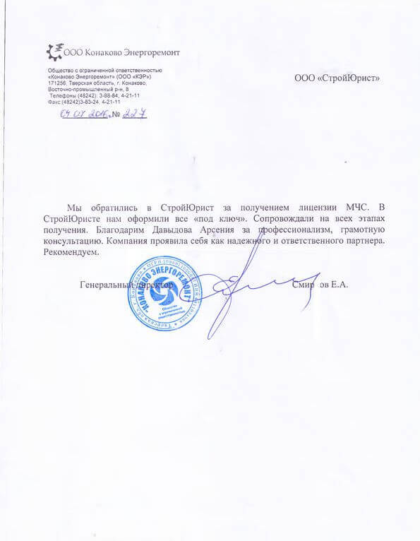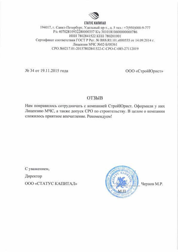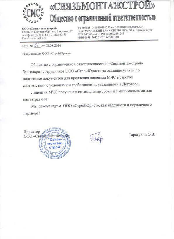 Отзывы клиентов "СтройЮрист" по лицензированию МЧС в Ставрополе