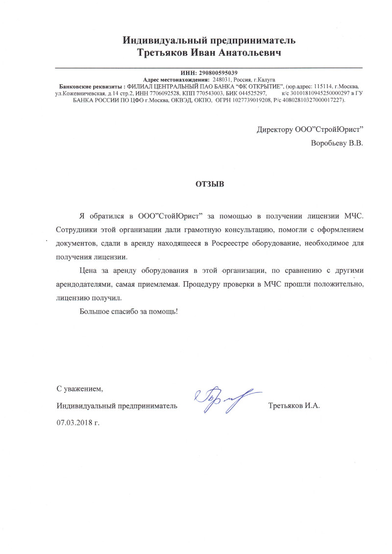 Отзывы клиентов "СтройЮрист" по лицензированию МЧС в Ставрополе