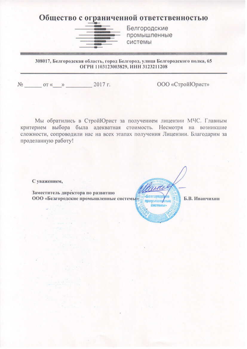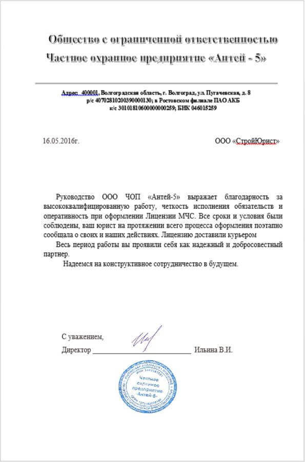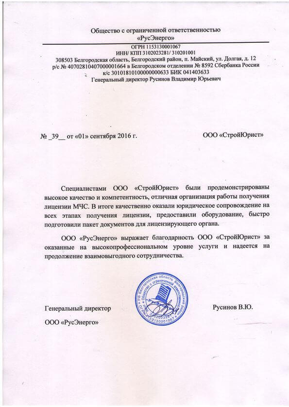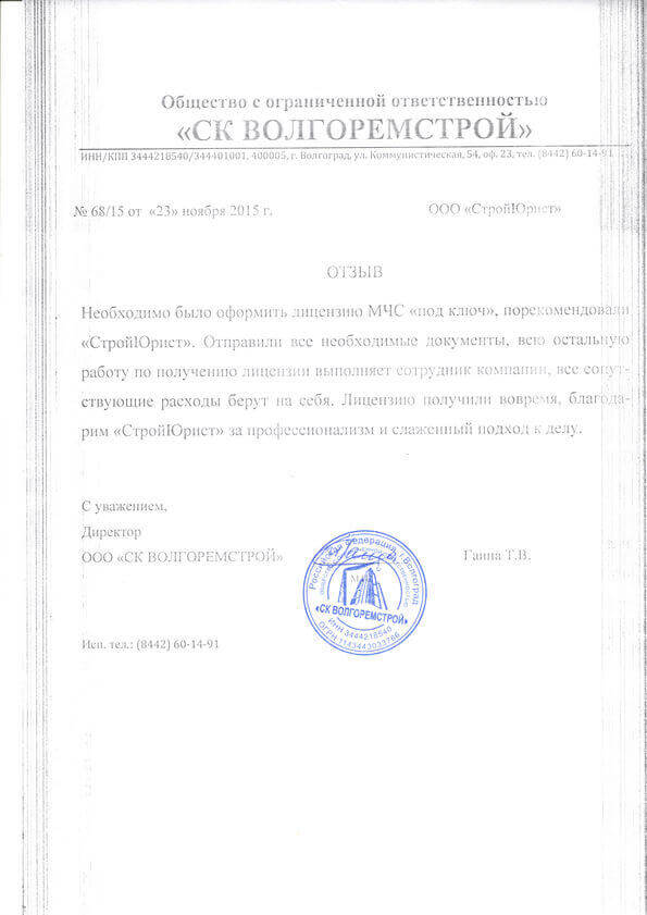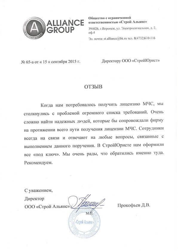 Отзывы клиентов "СтройЮрист" по лицензированию МЧС в Ставрополе